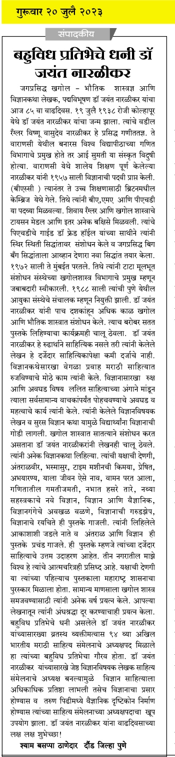 बहुविध प्रतिभेचे धनी डॉ जयंत नारळीकर